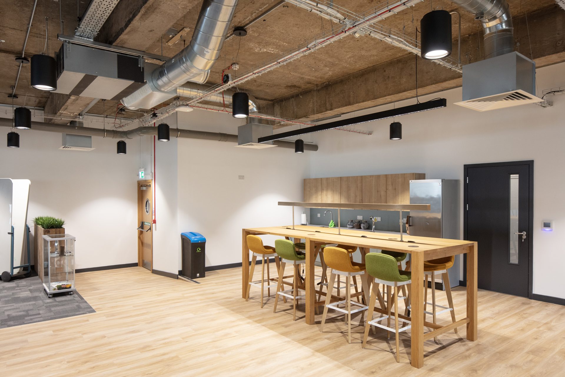 The project was designed and installed in 12 weeks from project inception, a programme saving of 6 weeks compared with a full new installation due to the time savings on procurement and manufacture which would normally be applicable. The project was delivered as a CAT A & B fit out for just £426/m² due to the client largely paying for installation only.